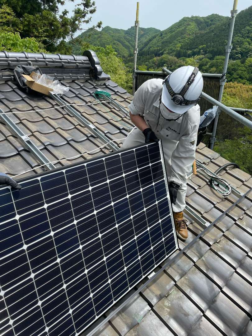 常陸大宮市山方地区にあるお宅の屋根にソーラーパネル設置する工事を行いました。