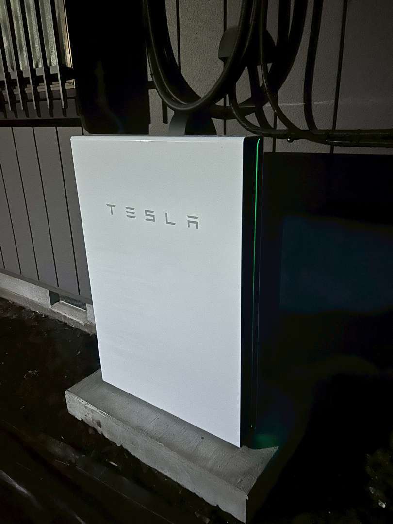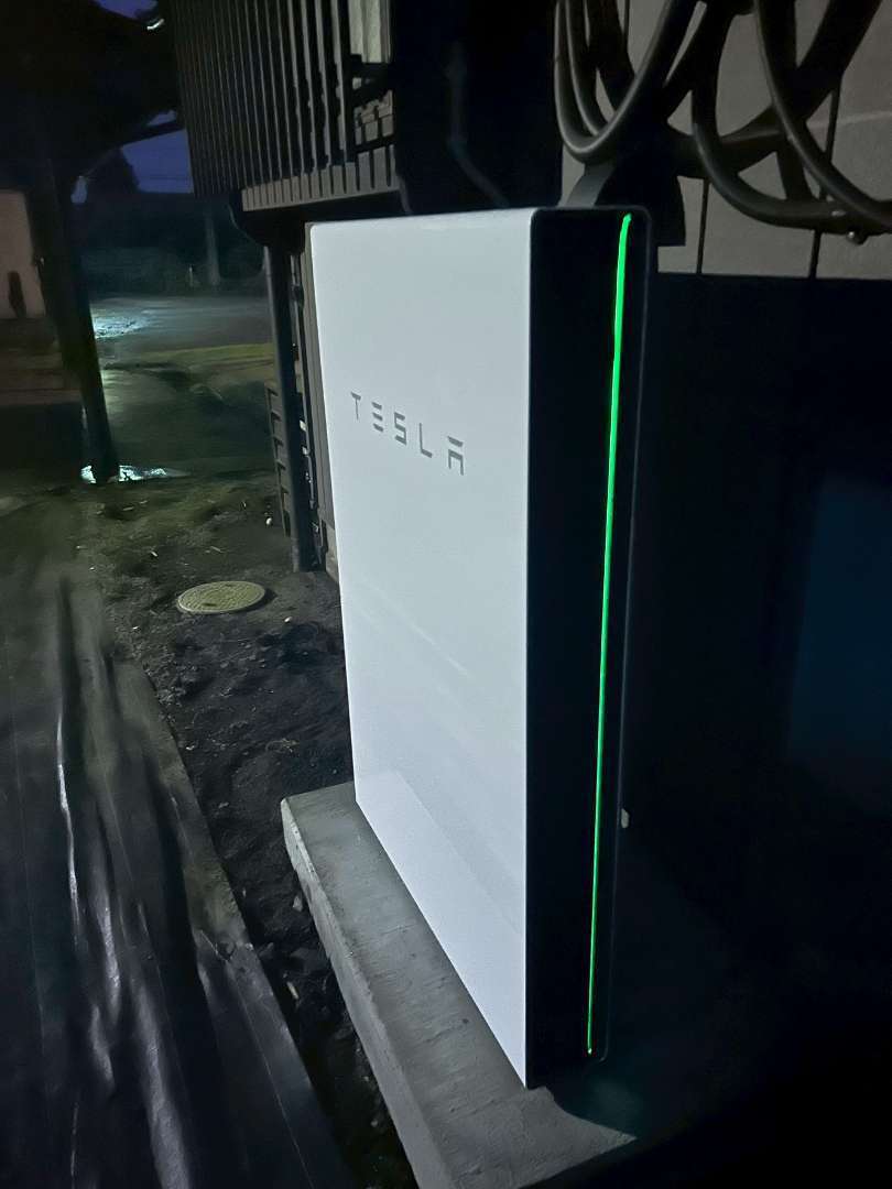 今回設置したのは、高いデザイン性と性能を誇る「テスラ Powerwall」です。 屋根上の太陽光パネルで発電した電気を効率よく貯め、夜間や悪天候時に活用することで、買電量を大幅に削減します。